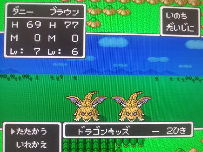 はがねのキバとかいがらぼうしが装備できるコドランを仲間にすべく、ラインハット周辺でドラゴンキッズのみを狩ります。他の敵からは全て逃げ、ドラゴンキッズ×2か3匹のみのグループが出るまでエンカウントさせます。